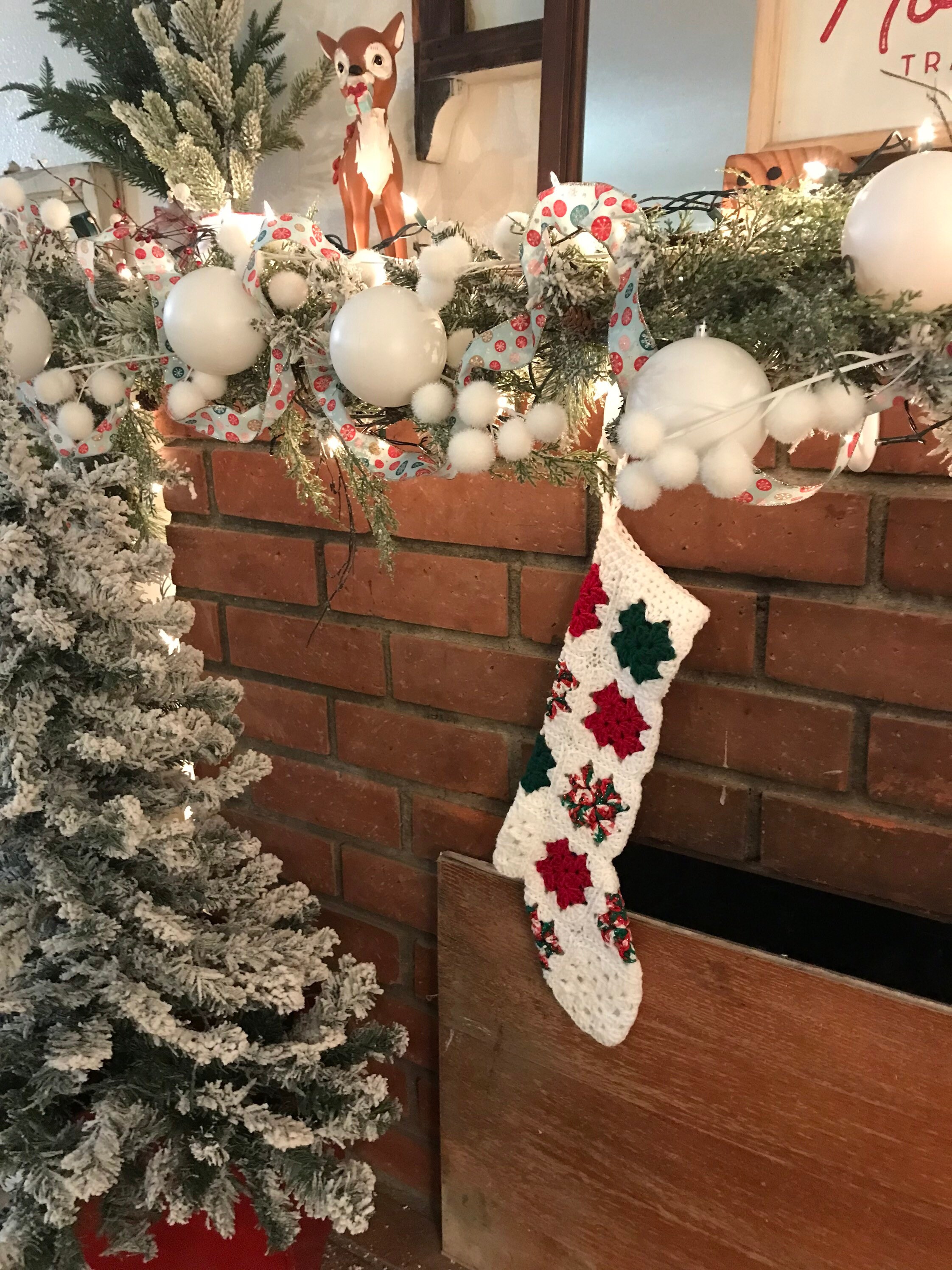 This handmade crochet stocking is the perfect cozy addition to your Christmas mantle. It will easily enhance your vintage holiday decor.