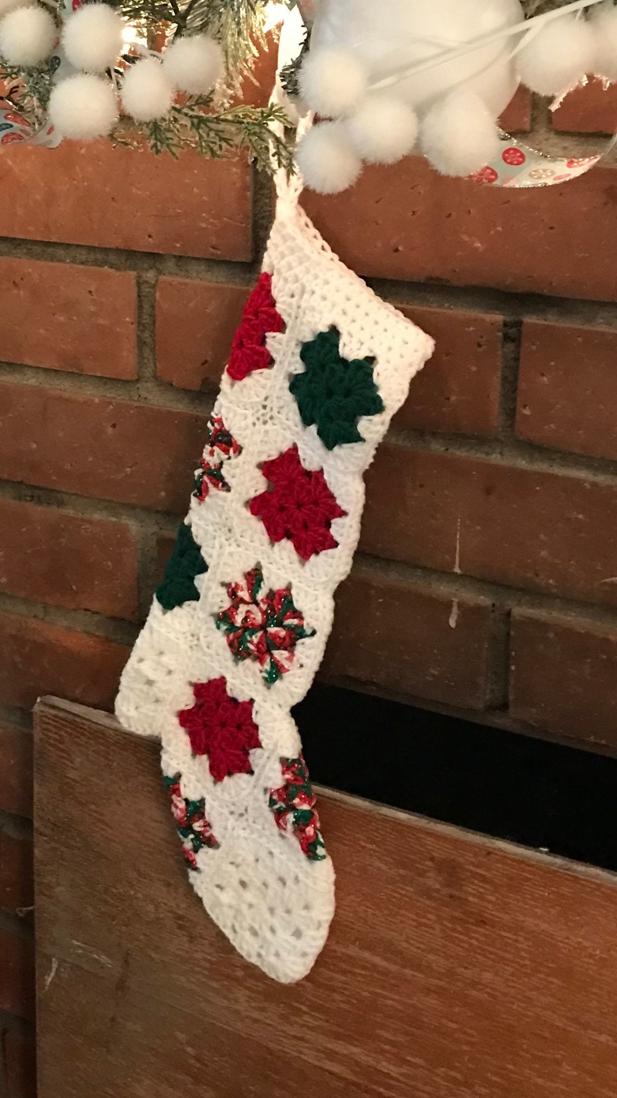 Crocheted Granny square Christmas stocking-Handmade Stocking-Crochet Stocking