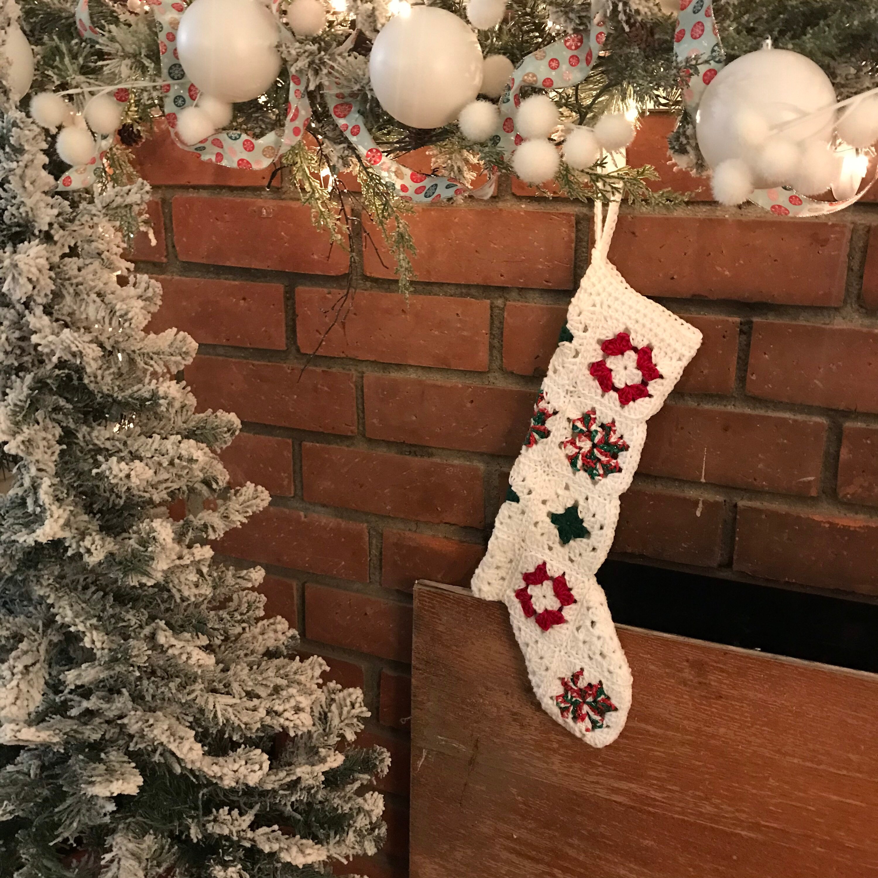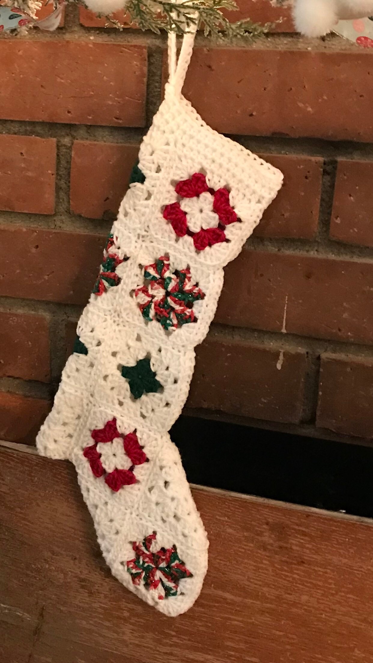 Crocheted Granny square Christmas stocking-Handmade Stocking-Chochet Stocking