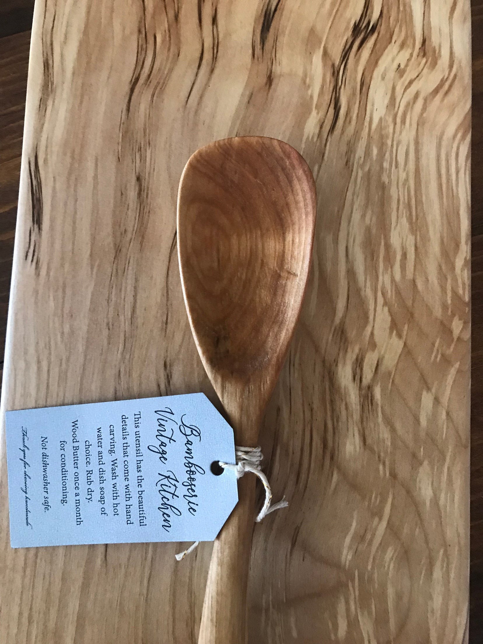 Wooden spoons are ideal for all kitchen uses. Please remember that wooden spoons should not be soaked in water and are not dishwasher safe. Simply wipe them clean with a dishrag/sponge with hot soapy water and allow to air dry, then put them away.