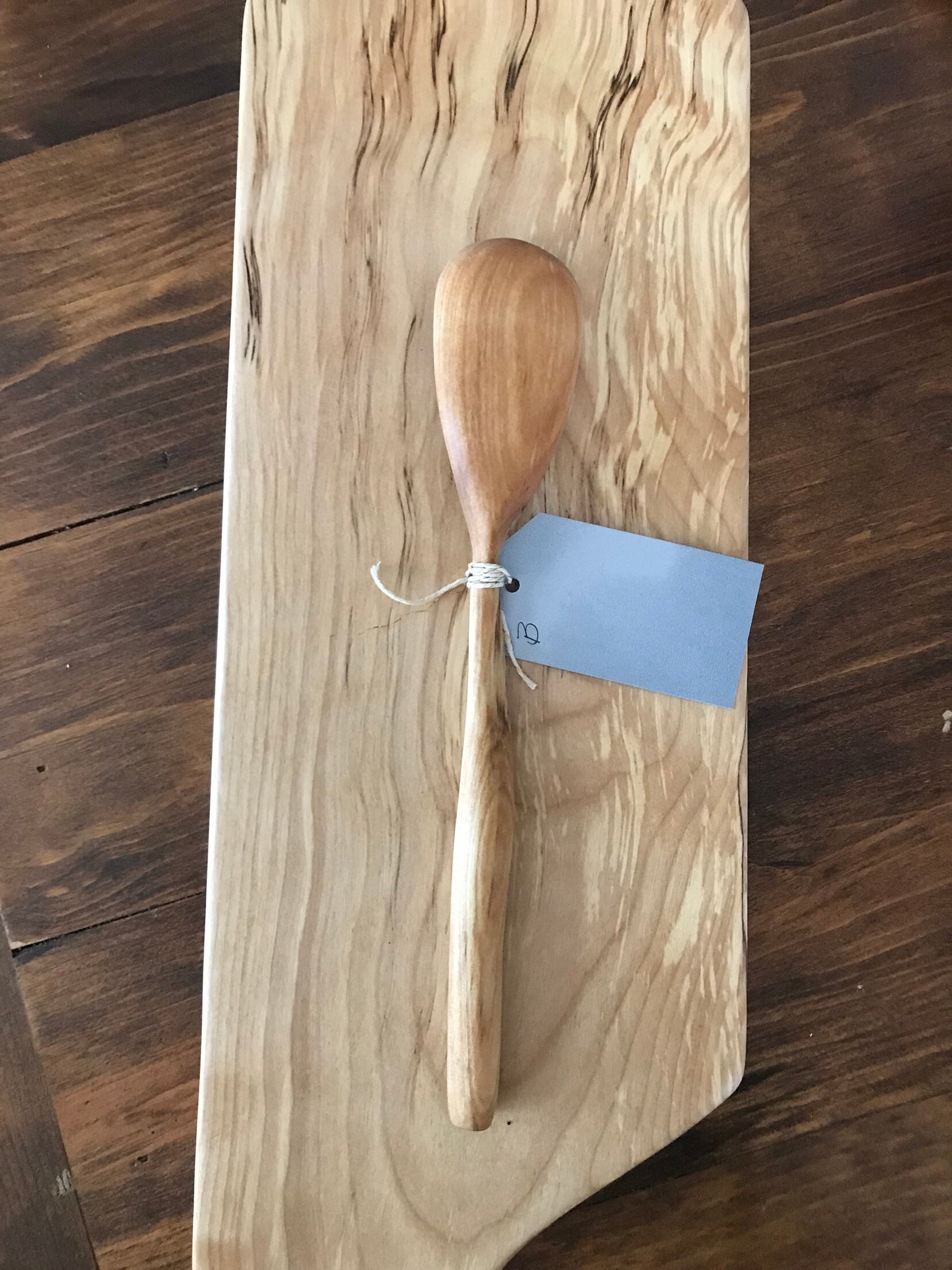 This spoon has been hand carved and sanded. Finished with oil and wood butter it’s ideal for cooking or serving.
