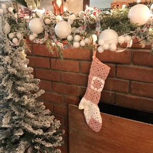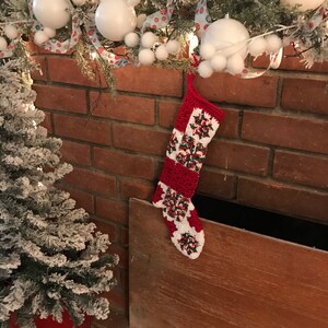 This handmade crochet stocking is the perfect cozy addition to your Christmas mantle. It will easily enhance your holiday decor.